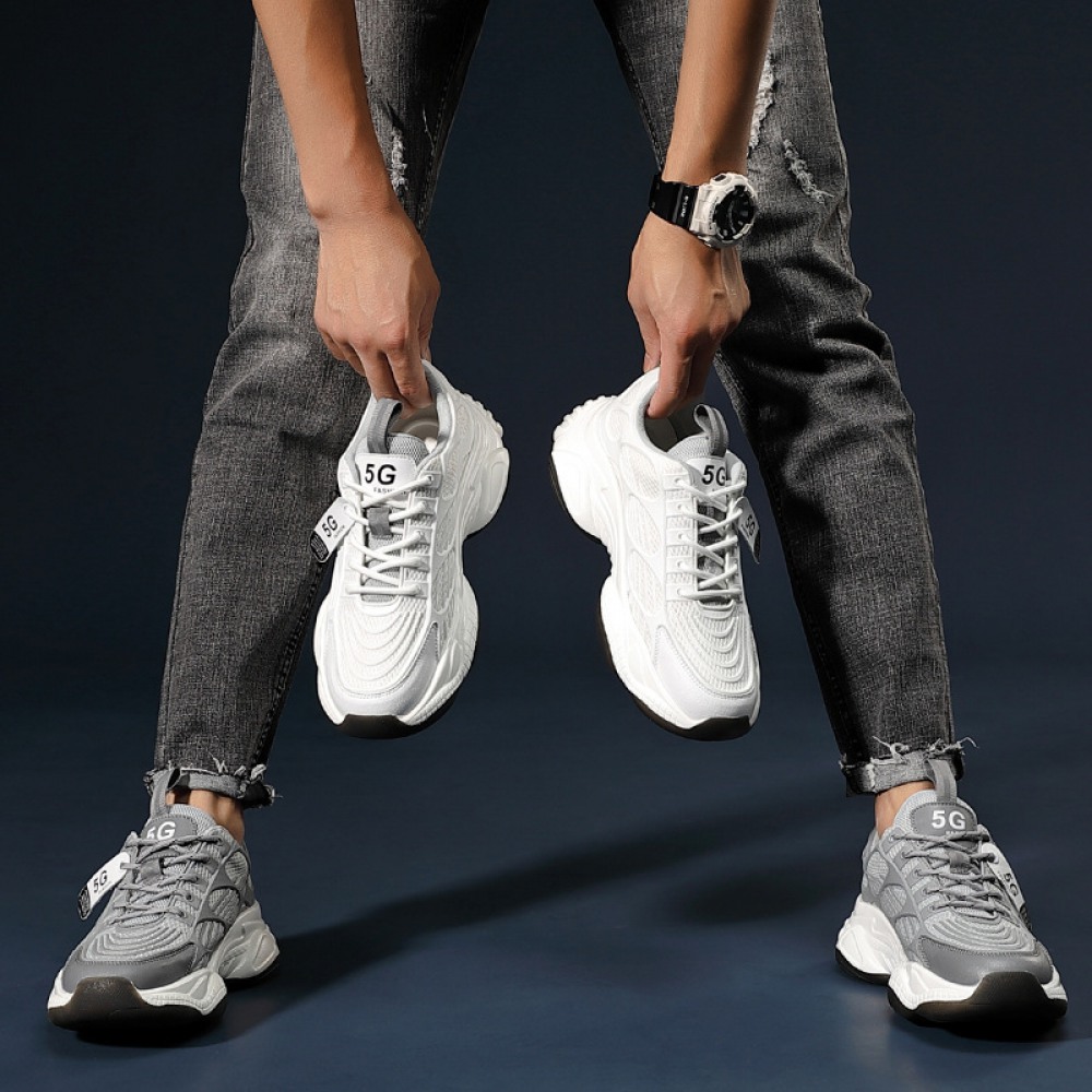 Men's Lightweight Breathable Mesh Street Sport Walking Shoes Casual Sneakers White