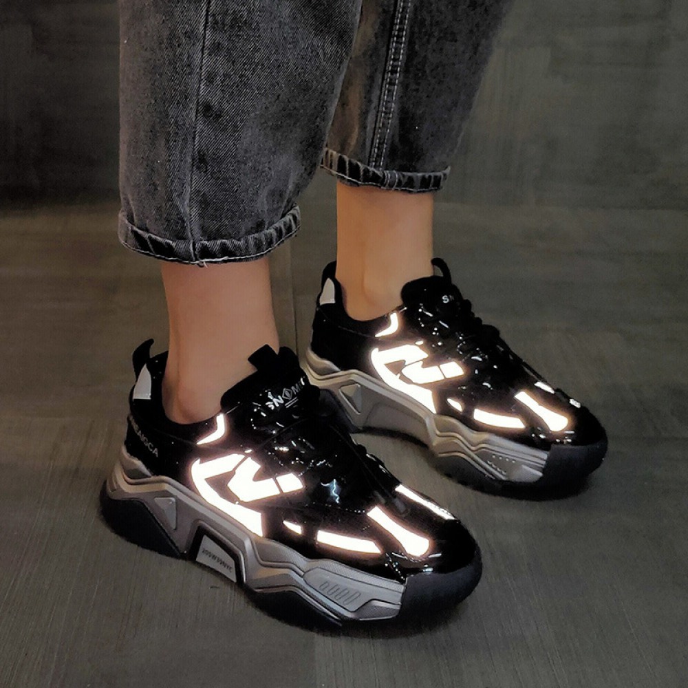 Women's New Thick-Soled Increased Luminous Mesh Sports Casual Shoes Plus Velvet Keep Warm